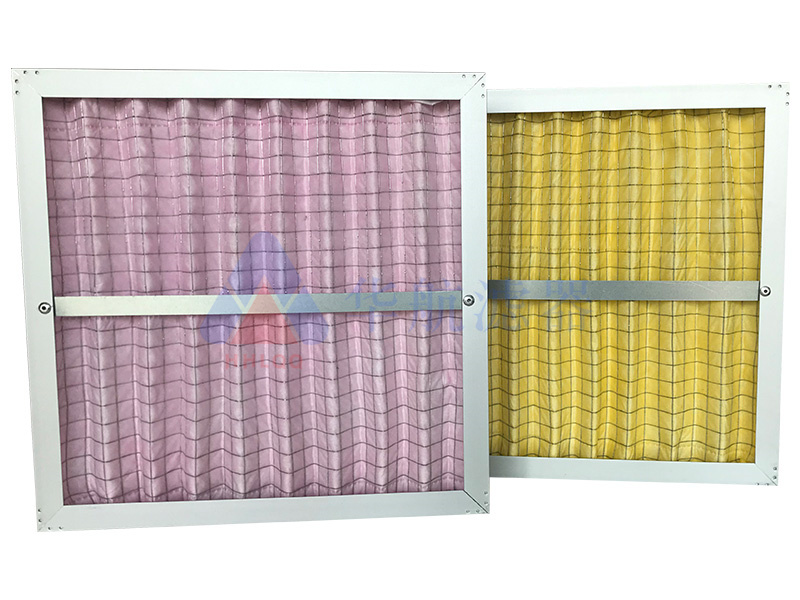 多褶式的滤料可以形成通风气流通道,增加滤料面积和送风量,降低送风的阻力;