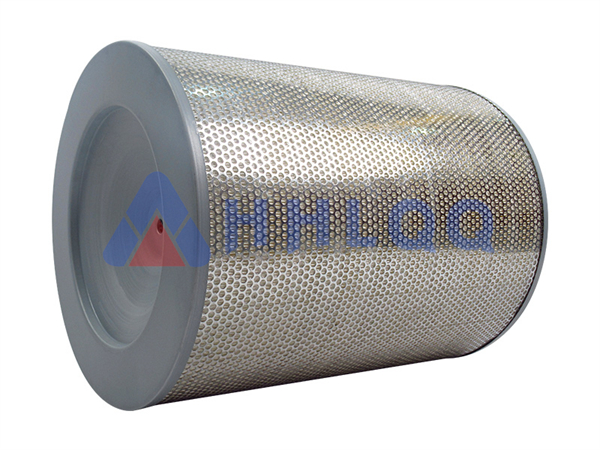 其中油气分离滤芯是决定喷油螺杆压缩机排出压缩空气质量的关键部件。从螺杆压缩机主机机头压缩出来的空气夹带着大小不一的油滴,大油滴通过油气分离罐体易于分离,而小油滴则必须通过油气分离滤芯的微米级玻纤滤材进行过滤。正确选择玻纤直径及厚度是保证过滤效果的一个重要因素。油雾经过滤材的拦截,扩散和聚合后,小油滴很快聚合成大油滴,在气动和重力的作用下通过滤层,沉降在滤芯底部。这些油通过滤芯底部凹处的回油管进口,不断返回润滑系统,从而使压缩机排出比较纯净,高品质的压缩空气。